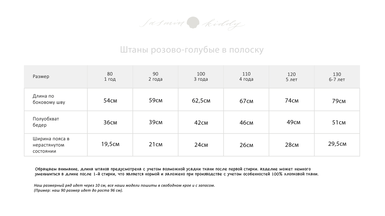 Брюки пошиты из мягкого, лёгкого и дышащего хлопково-льняного (хлопок 70%, лён 30%). материала. Полосатый принт в приглушённых оттенках синего, розового и зеленого. Материал обладает легкой жатой текстурой, что подчёркивает натуральность ткани и облегчает уход.
